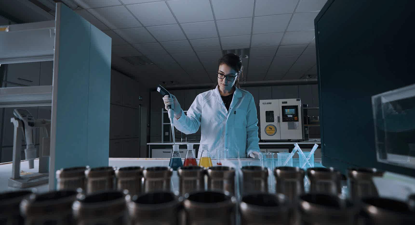 In-house colour laboratory is capable of dyeing 700 lab dips per day in order to find out what formula creates the best colour match for the given fabric.